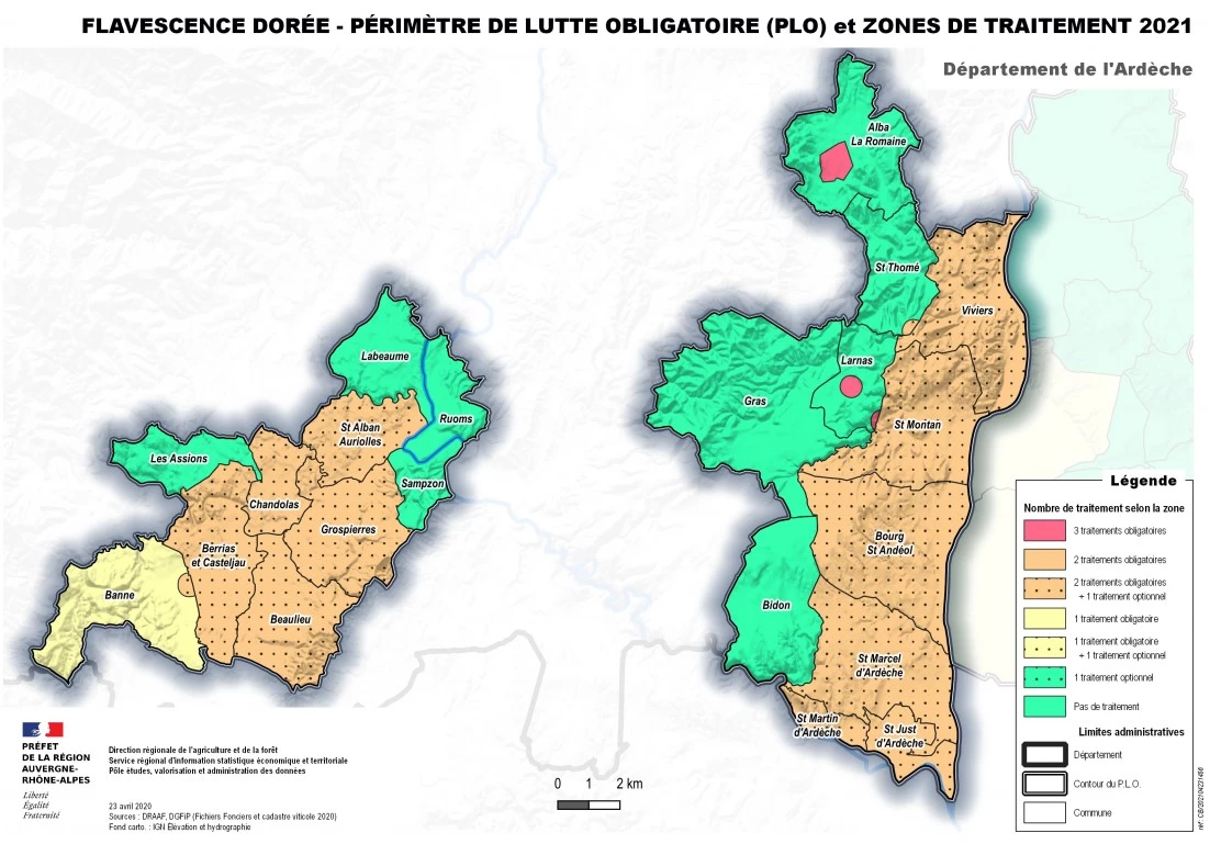 Alors qu’un foyer a été détecté à Alba-la-Romaine fin 2020, un nouveau périmètre de lutte obligatoire a été défini pour l’Ardèche. Les campagnes de prospection démarreront dès le mois d’août.